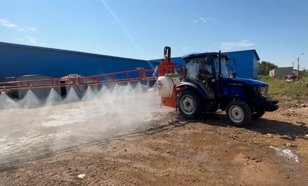 Трехскладная металлическая штанга, оснащенная 32 форсунками, установленными с линейным интервалом 50 см.